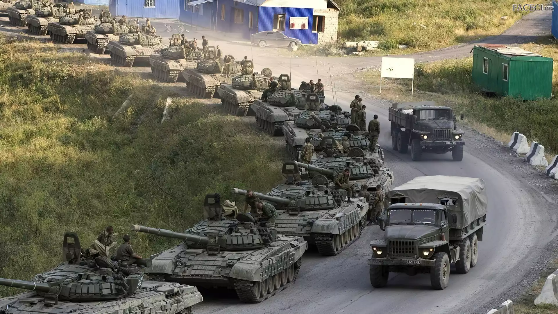 Czołgów, Żołnierze, Kolumna, Ciężarówki - faceci.biz